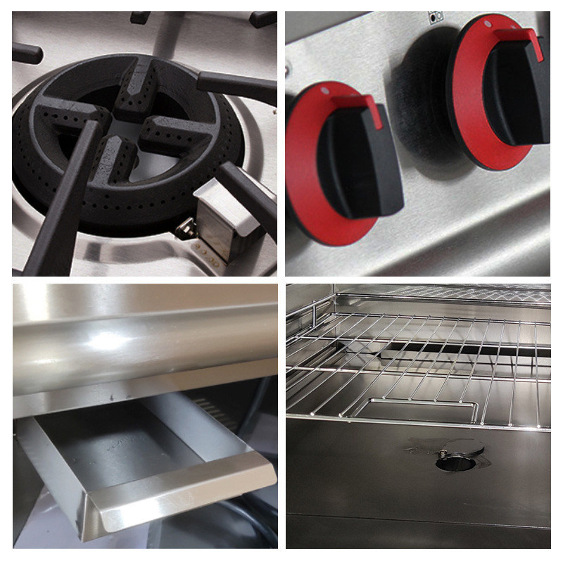 Cocina eléctrica para restaurantes Gas 4 Range de quemadores con gas Grill con horno